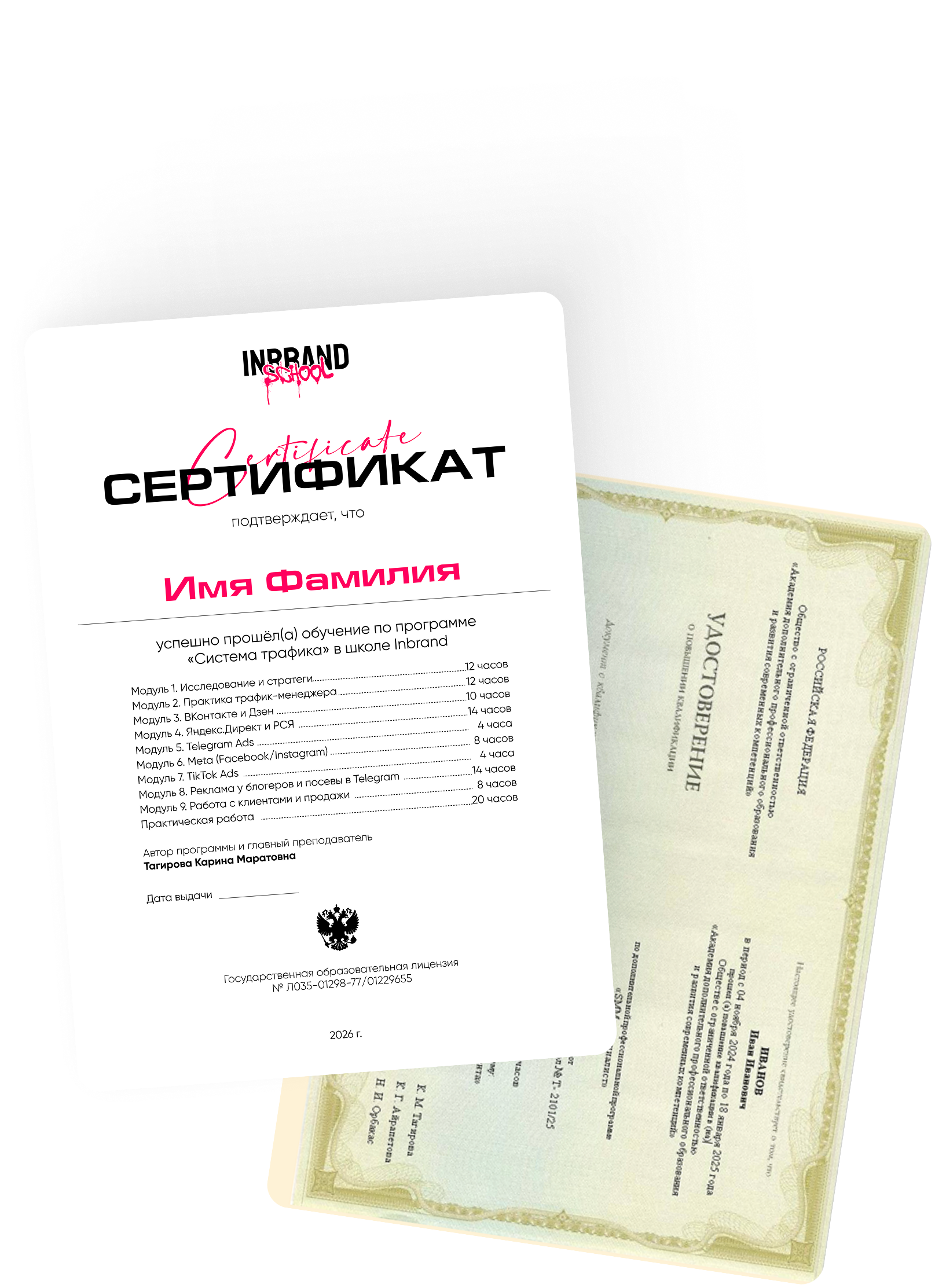 • Сертификат о прохождении курса